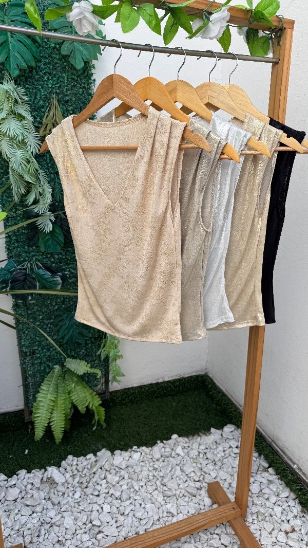 Musculosa V metalizada drapeada