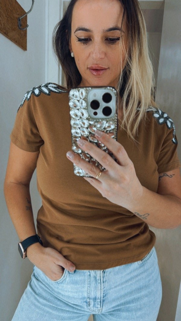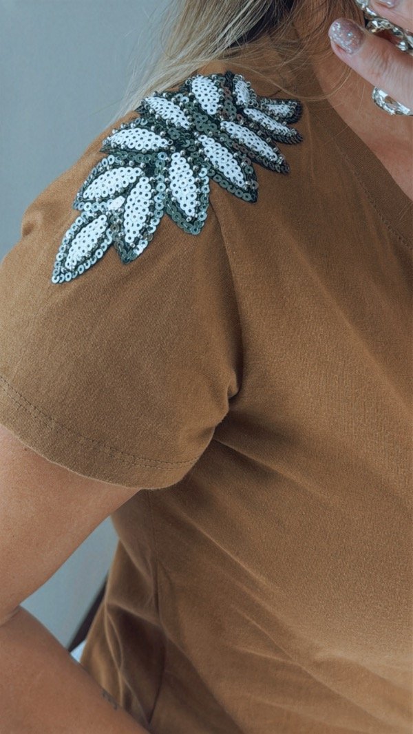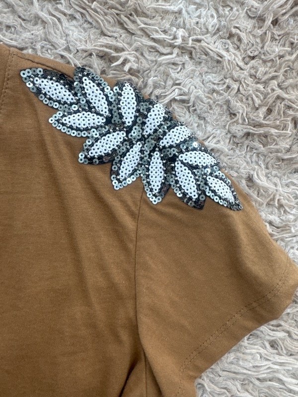 Algodón Peinado. Aplique de lentejuelas . Escote redondo